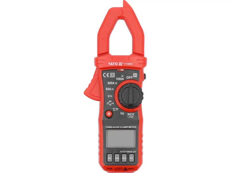 Poznámka: Merače schopné merať jednosmerný prúd vrátane YT-730933 používajú Hallov snímač, ktorý meria hodnotu intenzity magnetického poľa. Magnetické pole Zeme sa vyskytuje prirodzene, v dôsledku čoho sú údaje meracieho prístroja intenzity jednosmerného prúdu nenulové. Pred každým meraním intenzity jednosmerného prúdu sa musí merač priblížiť k testovanému káblu, vynulovať sa pomocou tlačidla REL, potom sa upne na testovaný kábel a odčíta sa výsledok.