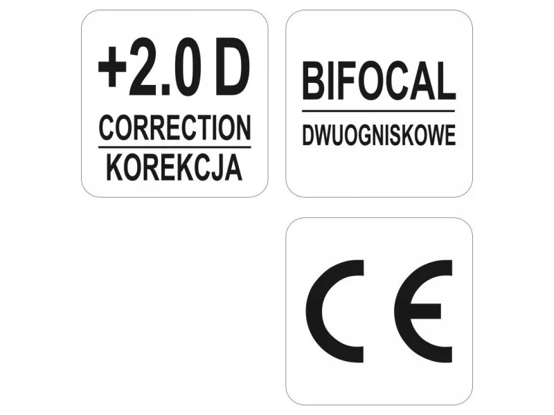 Okuliare sú k dispozícii s týmito hodnotami zväčšenia: +1,0 D, +1,5 D,+ 2,0 D, + 2,5 D, +3,0 D*.