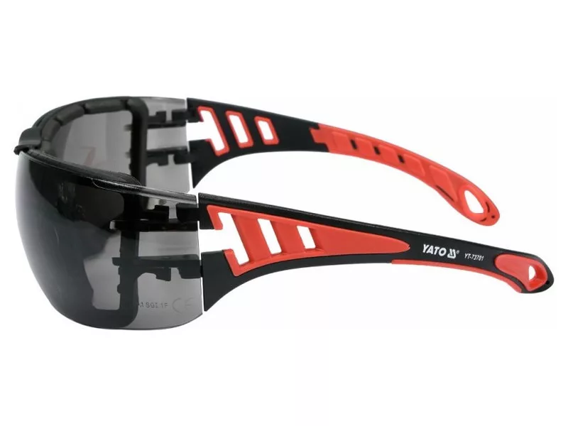 Tónované ochranné okuliare YT-73701 s pripevneným popruhom sú určené na ochranu očí pri manuálnej a mechanickej práci, ako je brúsenie, vŕtanie atď. Sú vhodné aj pre aktívnych ľudí, napríklad pri cyklistike alebo turistike. Vhodné aj pre aktívnych ľudí, napr. pri jazde na bicykli alebo turistike.