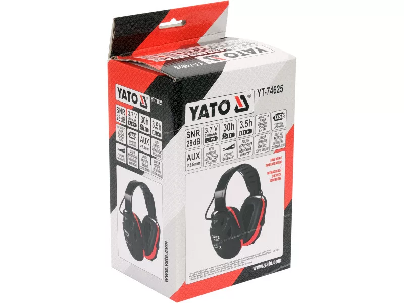 Aktívne protihlukové chrániče sluchu YT-74625 s inteligentným modulom, ktorý zosilňuje tiché okolité zvuky. Pri nosení chráničov sluchu so zapnutým modulom počujete rovnako dobre ako bez neho. Ak však úroveň okolitého hluku prekročí 82 dB, inteligentná ochrana sluchu okamžite zareaguje a modul na dobu trvania nadmerného hluku odpojí. Prevádzka chráničov sluchu s vypnutým modulom zaručuje zníženie hluku o 28 dB.