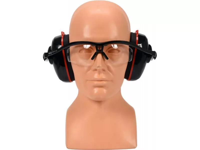Chrániče sluchu integrované do vymeniteľných priehľadných ochranných okuliarov YT-74636 chránia nielen sluch, ale aj oči používateľa. Guľôčkové nastaviteľné chrániče sluchu fungujú zároveň ako čelenka, čo umožňuje používateľovi pracovať napríklad s ochrannou prilbou bez dodatočného stlačenia hlavy.