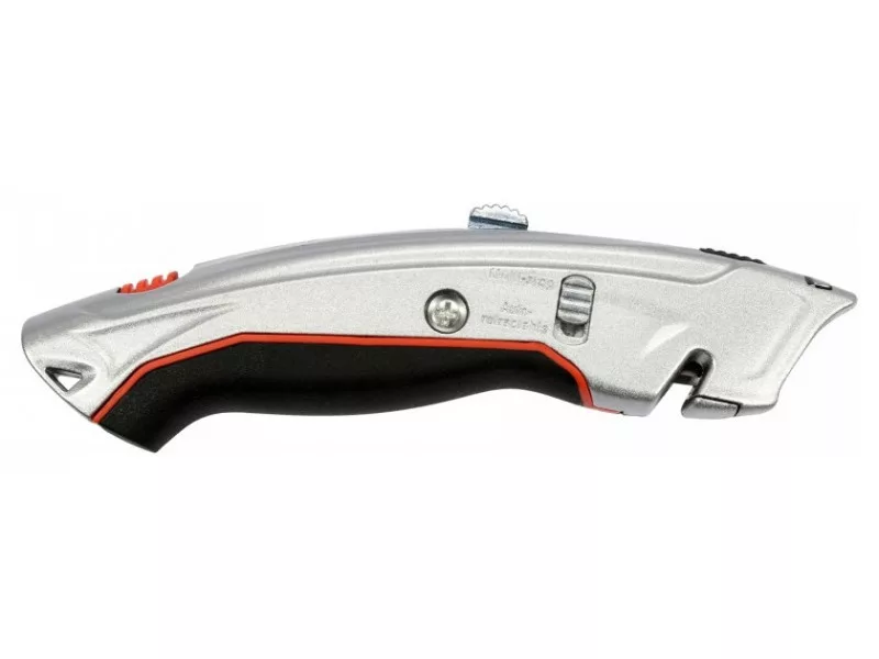 • Metalický mechanizmus vysúvania čepele s funkciou "multi-stop" umožňuje plynulé, trojstupňové vysunutie čepele