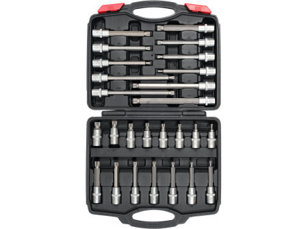 Sada 26 SPLINE klúčov na skrutky, navrhnutá na uvoľňovanie skrutiek. Môže sa používať v autoservise, stavebníctve, výrobe a pri údržbe poľnohospodárskych strojov.