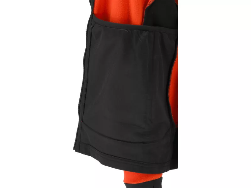 - Rozťahovateľná tkanina 2-way stretch na bokoch, pod pazuchami a čiastočne na spodku rukávov takmer úplne eliminuje nepohodlie práce známe z tradičných mikín napr. pri otočení trupu alebo pri práci s rukami nad hlavou. Zabezpečuje tiež lepšiu cirkuláciu vzduchu, čo znamená menej potenia, najmä pod pazuchou.