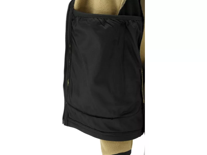 - Pružná tkanina 2-way stretch na bokoch, pod pazuchami a čiastočne na spodku rukávov takmer úplne eliminuje nepohodlie práce známe z tradičných polarov, napr. pri otočení trupu alebo práci rukami nad hlavu. Zabezpečuje tiež lepšiu cirkuláciu vzduchu, čo znamená menej potenia, najmä pod pazuchami.