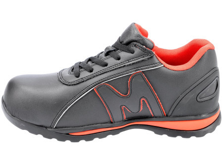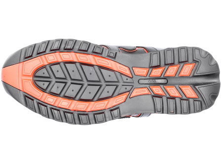 Topánky neobsahujú kovové časti. Ako vložka proti prepichnutiu, tak aj gumová podrážka sú flexibilné a - na rozdiel od tradičných topánok s PU podrážkou a oceľovou vložkou - neobmedzujú ohýbanie v oblasti strednej časti chodidla. Vrchná časť z prírodného zrnitého kože je zdobená odrazovými pruhmi na zvýšenie viditeľnosti nositeľa.