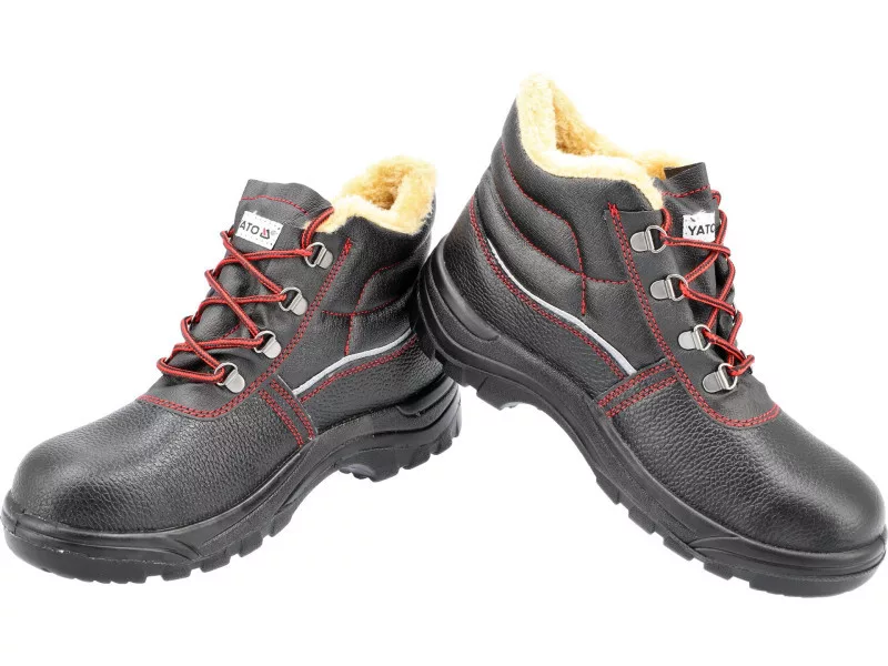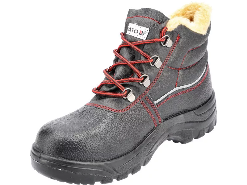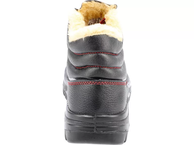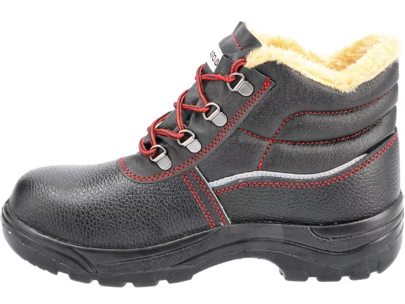 Zateplená pracovná obuv TEZU série S1P s nárazuvzdornou oceľovou špičkou a vložkou proti prepichnutiu, ktorá chráni chodidlo pred prepichnutím.