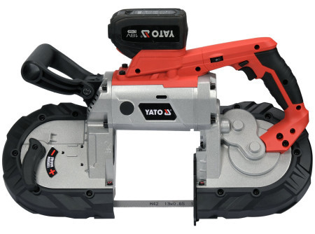 Szalagfűrész, amelyet rozsdamentes acél, edzett acél, fémprofilok és csövek vágására terveztek. Ajánlott szerelési, összeszerelési és építőipari munkához. A Yato 18V rendszerű akkumulátorokkal működik.