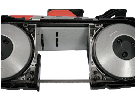 A készülék kialakítása lehetővé teszi a gyors cseréket és az eszköz nélküli feszítést a vágószalag számára. A fémből készült test növeli a mechanikai stresszel szembeni ellenállóképességet és elősegíti a hőelvezetést.