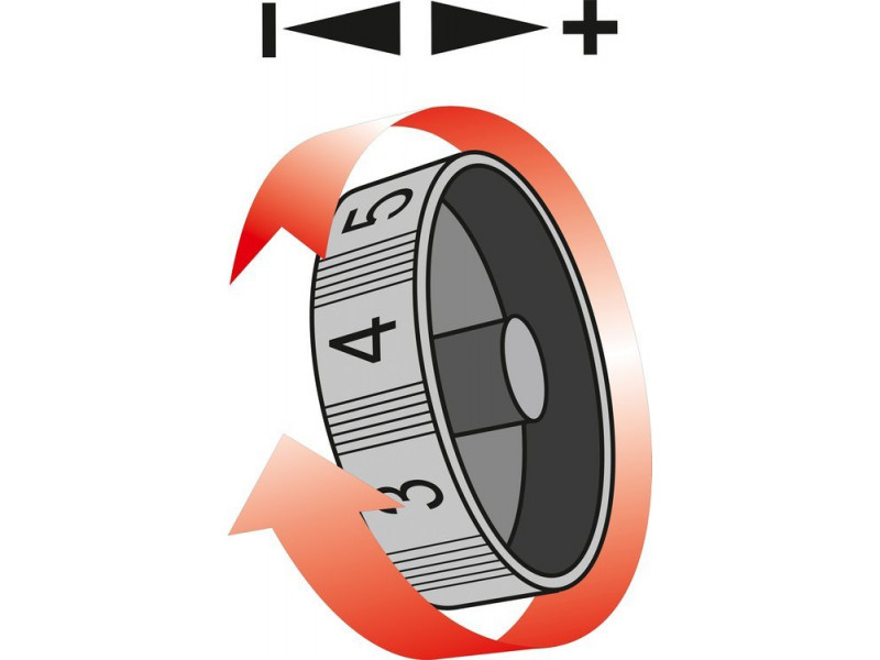 Šípky a symboly nad tlačidlom ukazujú smer otáčania pre zvýšenie (+ symbol) alebo zníženie (- symbol) rýchlosti.