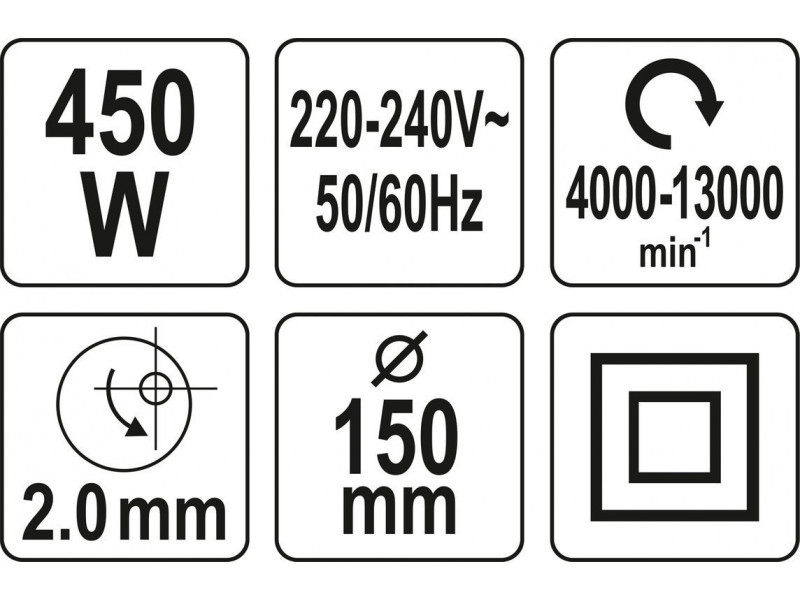 - Výkonná brúska (450W) s nastaviteľnou rýchlosťou, ideálna kombinácia pre prácu s drevom, odstraňovanie hrdze a náterov