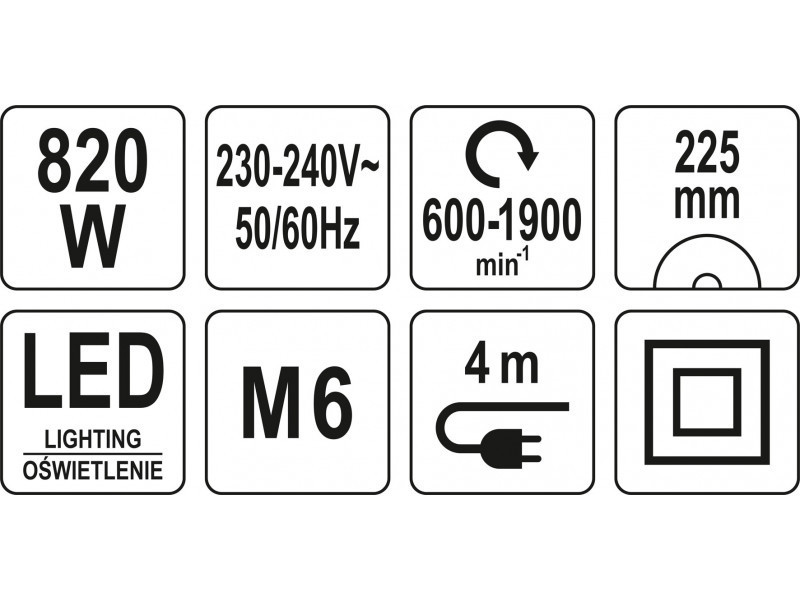 - 225 mm brúsna hlava (okrúhly podložka) - je k dispozícii samostatne (kód produktu YT-82353)