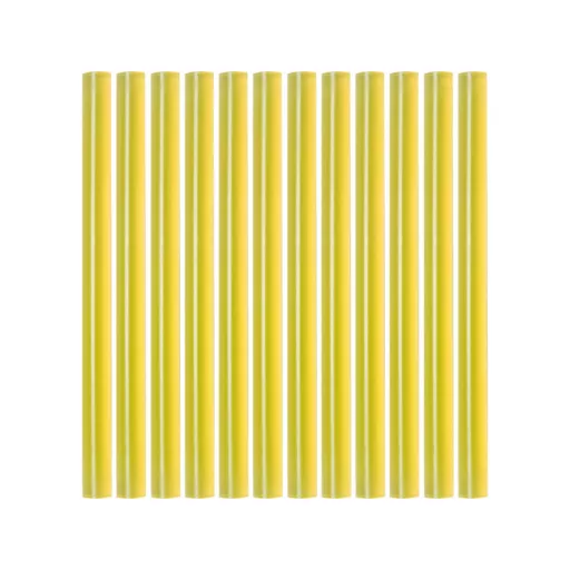 Žlté tavné lepidlo s priemerom 7,2 mm a dĺžkou 100 mm. Balenie obsahuje 12 lepiacich tyčiniek.