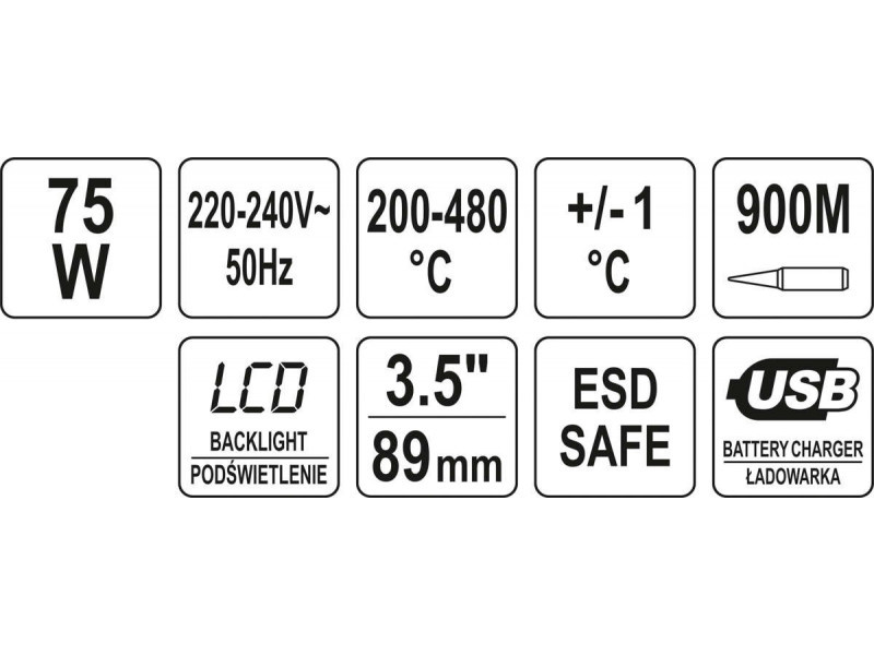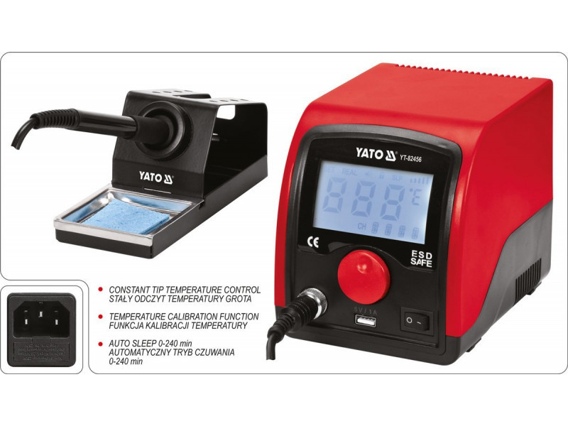 A YT-82456 forrasztóállomás ESD-biztonságos, ami garantálja, hogy a házon nem halmozódik fel felesleges elektrosztatikus töltés. Ez csökkenti a sérülékeny SMD áramkörök károsodásának kockázatát, például. Kb. 25 másodperc alatt melegszik fel a működési hőmérsékletre, ami 350°C.