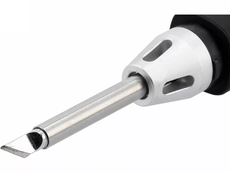 Konštrukcia hrotu kombinuje v jednom puzdre vyhrievací prvok, teplotný senzor a pracovnú špičku, čo zabezpečuje veľmi rýchle dosiahnutie požadovanej teploty a jej stabilné udržiavanie počas práce. Funkcie regulácie teploty, kalibrácie, režimu spánku a automatického vypnutia fungujú analogicky s riešeniami používanými v plnohodnotných pájkovacích stanicách, umožňujúc precíznu prácu pri oboch typoch súčiastok, ako aj pri montáži SMD.