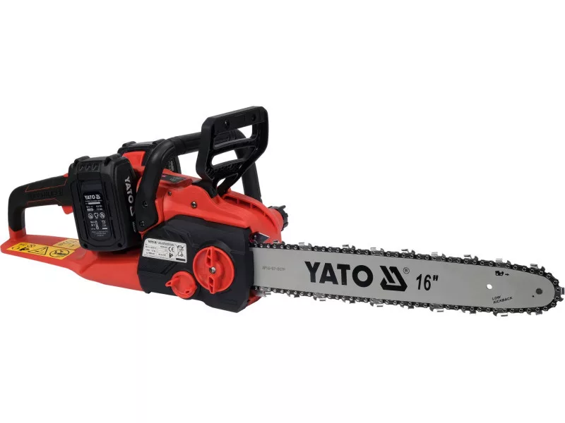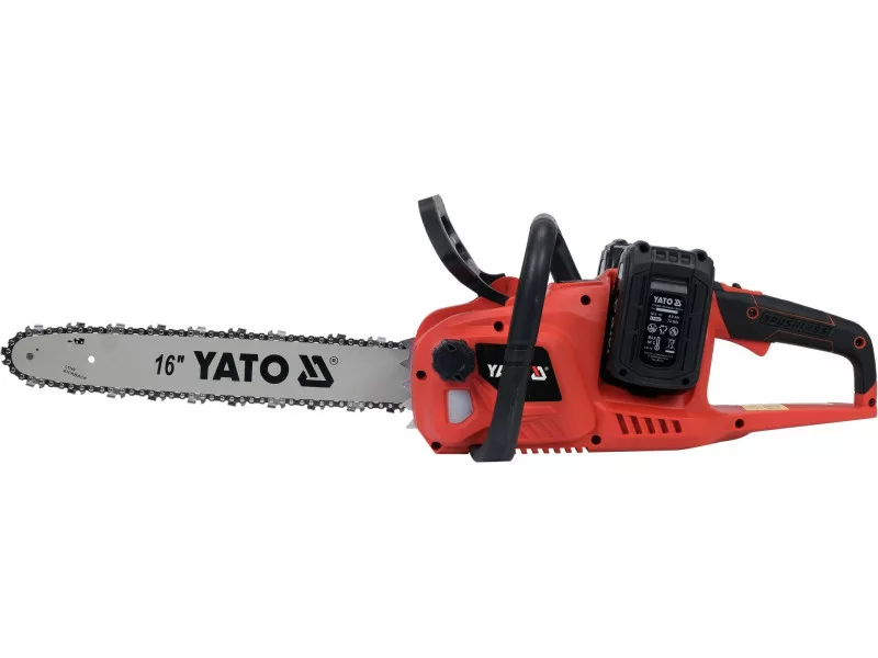 Je poháňaná dvoma 18 V akumulátormi z platformy YATO, ktoré poskytujú dlhý čas prevádzky na jedno nabitie. Bezkartáčový motor ponúka tichú prevádzku a dlhú životnosť zariadenia. Celoobvodová rukoväť umožňuje píle bezpečne rezať pod rôznymi uhlami. Náradie má samostatný gombík na nastavenie napnutia reťaze a samostatný gombík na otváranie krytu.