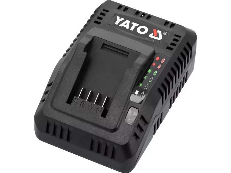 Rýchla nabíjačka pre všetky 18 V systémové aku batérie YATO. Zabudovaný systém testovania výkonu a teploty batérie sa stará o jej životnosť. Nezačne nabíjať, keď sú články príliš horúce. V prípade akumulátora uloženého pri zápornej teplote začne nabíjať, keď akumulátor dosiahne teplotu vyššiu ako +5 stupňov Celzia.