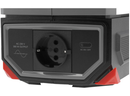 Hordozható akkumulátoros áramforrás 315 Wh kapacitással. Egyszerre öt eszközt képes támogatni. A beépített AC inverter tiszta szinusz hullámmal és 300 W névleges kimenettel (csúcson akár 600 W) hasznos vészhelyzeti áramforrás lehet többek között a központi fűtés szivattyújához és vezérlőjéhez, a routerhez, a set-top boxhoz vagy a tévéhez. Három USB port, beleértve az egyik USB-C portot PD 60 W technológiával, képes töltetni és újratölteni egy okostelefont, tablettet vagy laptopot. A 12 voltos aljzat sikeresen tápellátást biztosít egy túrázó hűtőszekrényhez vagy dedikált világításhoz.