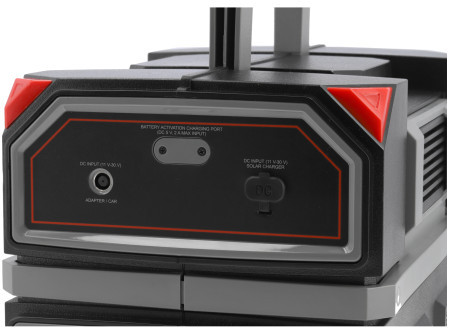 - Stanica môže byť nabíjaná tromi spôsobmi: sieťovým adaptérom s výkonom max. 180 W, cez zásuvku zapalovača cigaret alebo z externých solárnych panelov