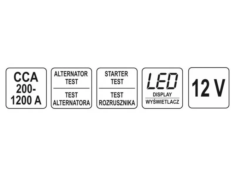 Umožňuje testovanie 12-voltových batérií v osobných automobiloch, dodávkach a motocykloch, ako aj vyhodnotenie štartovacieho systému.
