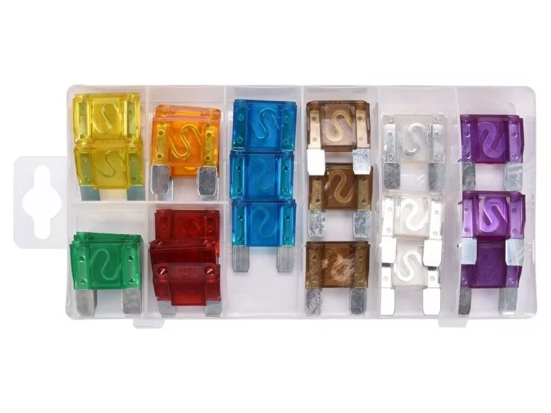 Sady doskových poistiek na ochranu elektrických inštalácií v automobiloch pred poškodením spôsobeným nadmerným prúdom. Používajú sa okrem iného pre kompresory, elektrické čerpadlá, usmerňovače, zásuvkové rozvádzače. Balené v praktickom kufríku.