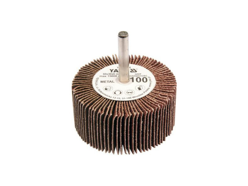Pracovný prvok brúsneho kotúča pozostáva z brúsnych pásových krídel, ktoré sú pevne prichytené k oceľovej osi.