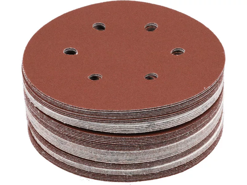 6 OTVOROV, PRIEMER 150 MM, ZRNITOSŤ 120, MATERIÁL: OXID HLINITÝ, ZADNÁ STRANA: 50KS, LEPENIE: EPOXIDOVÁ ŽIVICA, ZRNITOSŤ: POLOOTVORENÁ. BRÚSNE KOTÚČE SO ŠIESTIMI OTVORMI SÚ URČENÉ NA BRÚSENIE FARIEB, LAKOV, DREVENÝCH A KOVOVÝCH POVRCHOV. PRACUJÚ S ORBITÁLNYMI BRÚSKAMI A EXCENTRICKÝMI BRÚSKAMI YT-09739, YT-09740.