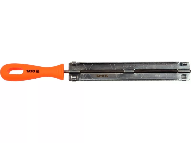 - obsahuje okrúhly pilník, vodiacu lištu a rukoväť z polypropylénu