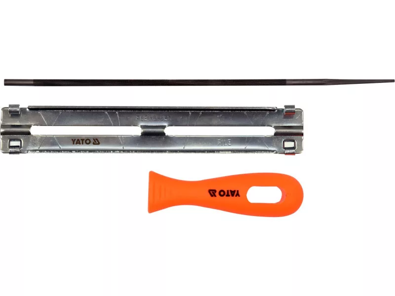 - obsahuje okrúhly pilník, vodiacu lištu a rukoväť z polypropylénu