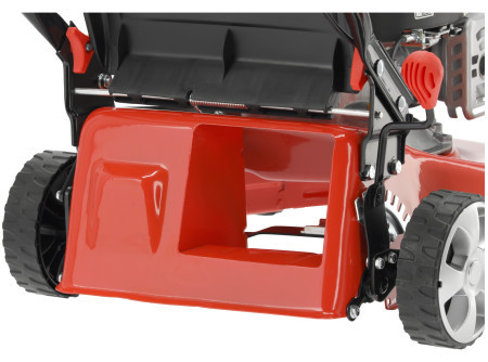 A benzinmotoros fűnyíró egy 123 cm3 LONCIN motorral van felszerelve a nagy teljesítmény és hatékonyság érdekében. A 41 cm-es munkaszélesség és a robusztus kialakítás megkönnyíti a fűnyírást a keskenyebb, egyenetlen és kihívást jelentő területeken, mint például lejtőkön, ösvényeken és virágágyások mellett vagy növénytelepítések mellett.