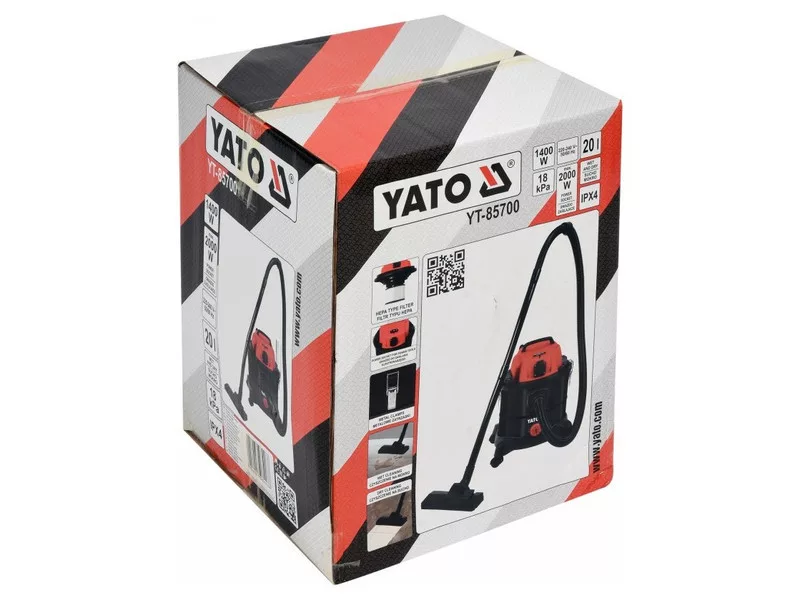Dielenský vysávač YATO s príkonom 1400 W a sacím výkonom 18 kPa. Má nádrž s objemom 20 l. Vysávač je vybavený teleskopickou antistatickou trubicou. Má tiež zabudovanú zásuvku, ktorá umožňuje používať elektrické náradie. Umožňuje prácu na mokro aj na sucho. Možno ho používať aj ako fúkač.