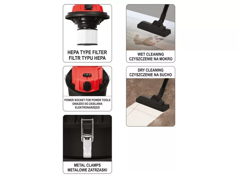 Vlastnosti: - je vybavený funkciou vysávania, ktorá umožňuje vysávať všetky nečistoty:
