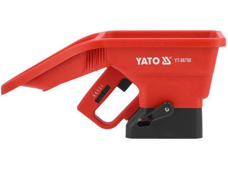 A kézi szóró fűmag vagy trágyázóanyag kiszórására szolgál. A vetőgép ergonomikus fogantyúja kényelmet és kényelmes használatot biztosít. A kialakított karfa ellensúlyként működik, ami segít megelőzni a kar túlterhelését.