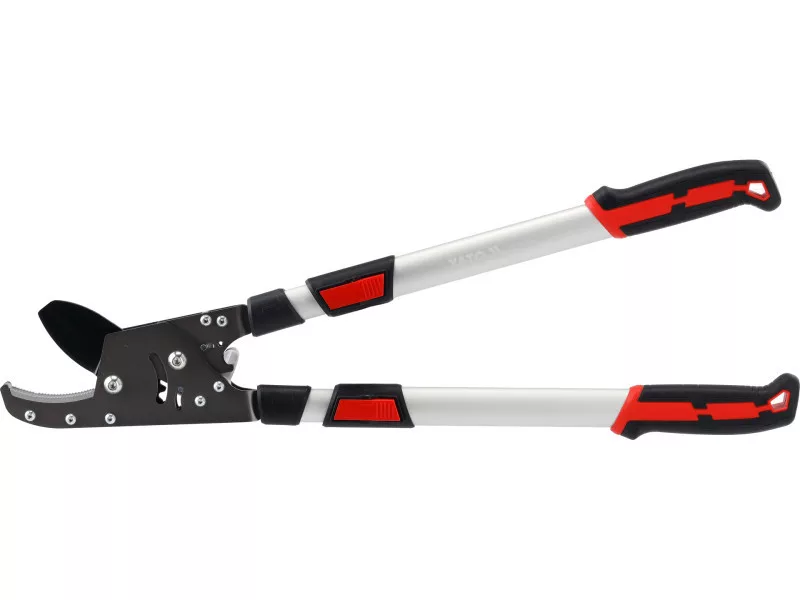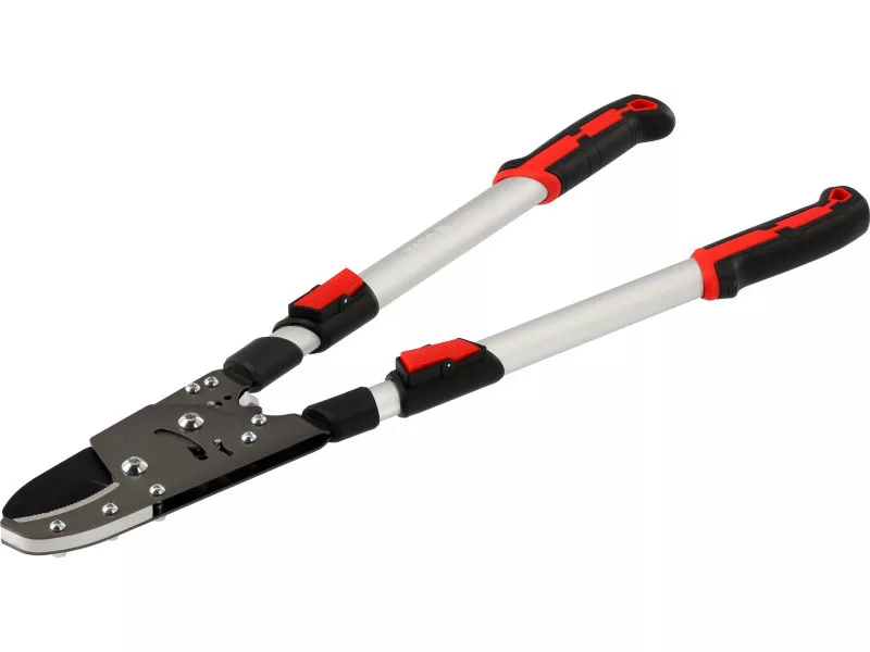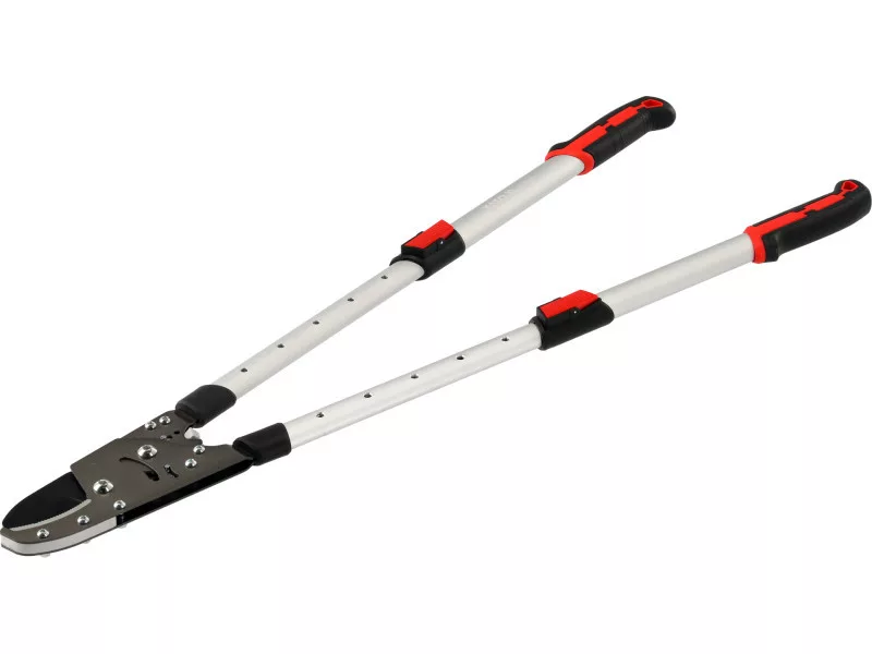 Teleskopické rukoväte sekača zvyšujú dĺžku a dosah nástroja z 660 na 910 mm, umožňujúc prispôsobenie podmienkam a vykonávaným úlohám. Vyhotovené z ľahkého a pevného zliatiny hliníka s prvkami PP a mäkkého TPR zabezpečujú pevný a komfortný úchop. Rezivo z kalenej ocele SK5, pokryté v hornej časti vrstvou PTFE, minimalizuje trenie, zachovávajúc ostrosť po dlhú dobu.