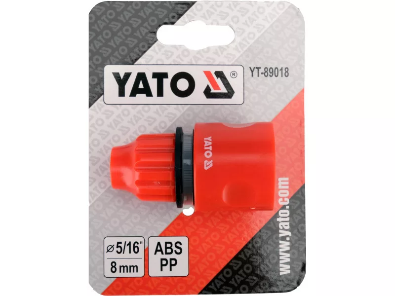 Rýchlospojka YATO YT-89018 je praktické a kompaktné riešenie určené na spojenie záhradných hadíc s priemerom 5/16" (približne 8 mm). Umôžňuje rýchle a tesné pripojenie hadice k zdroju vody alebo k príslušenstvu, ako sú pištole alebo zavlažovače.