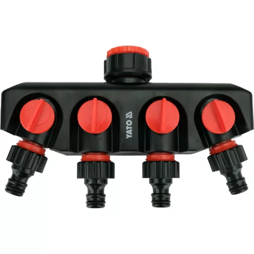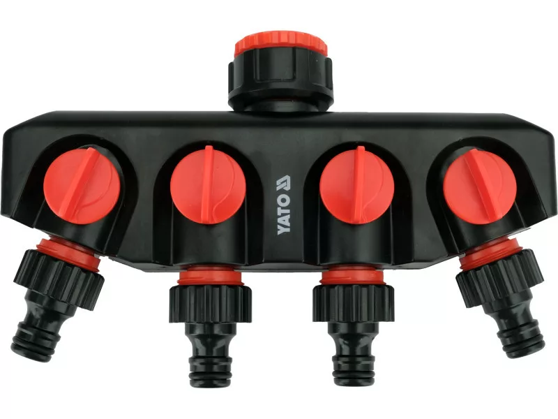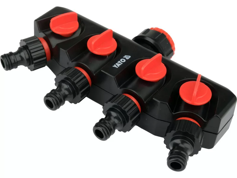 Rozdeľovač Yato YT-89103 umožňuje súčasné pripojenie až štyroch nezávislých vodných liniek k jednému kohútiku s 3/4" alebo 1" závitom. Každý výstup je vybavený samostatným ventilom, čo umožňuje presné riadenie prietoku vody. Vyrobený z odolných materiálov ABS a POM, prívod zabezpečuje odolnosť a spoľahlivú prevádzku aj v náročných vonkajších podmienkach.